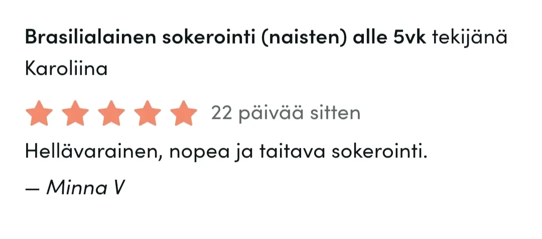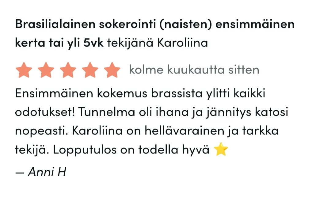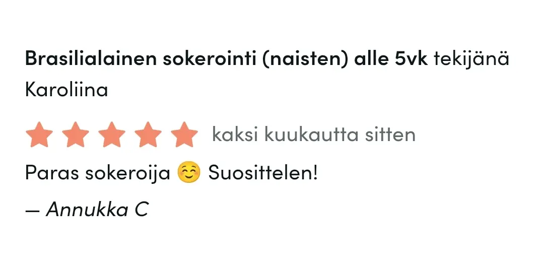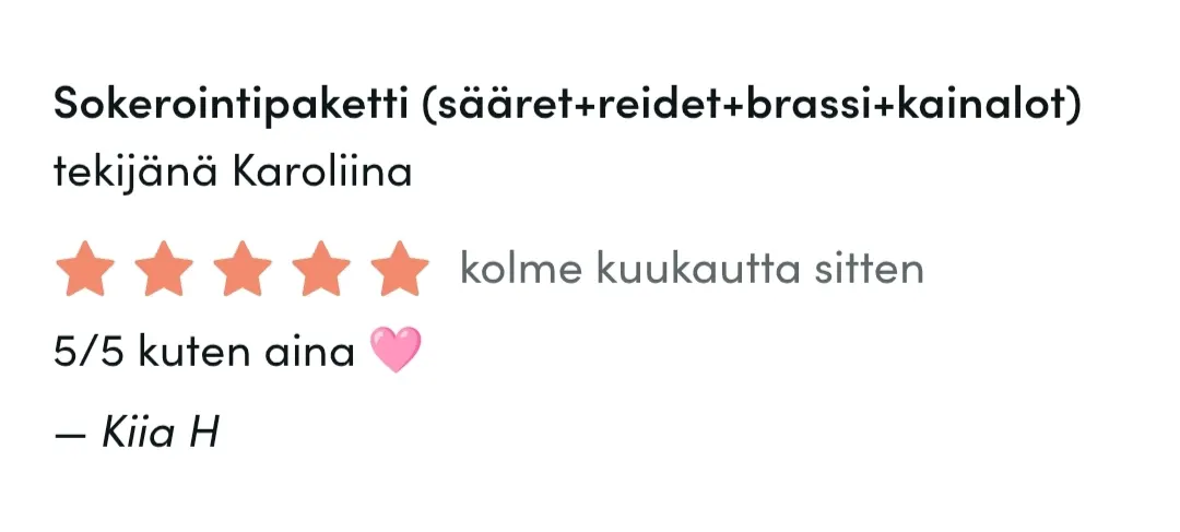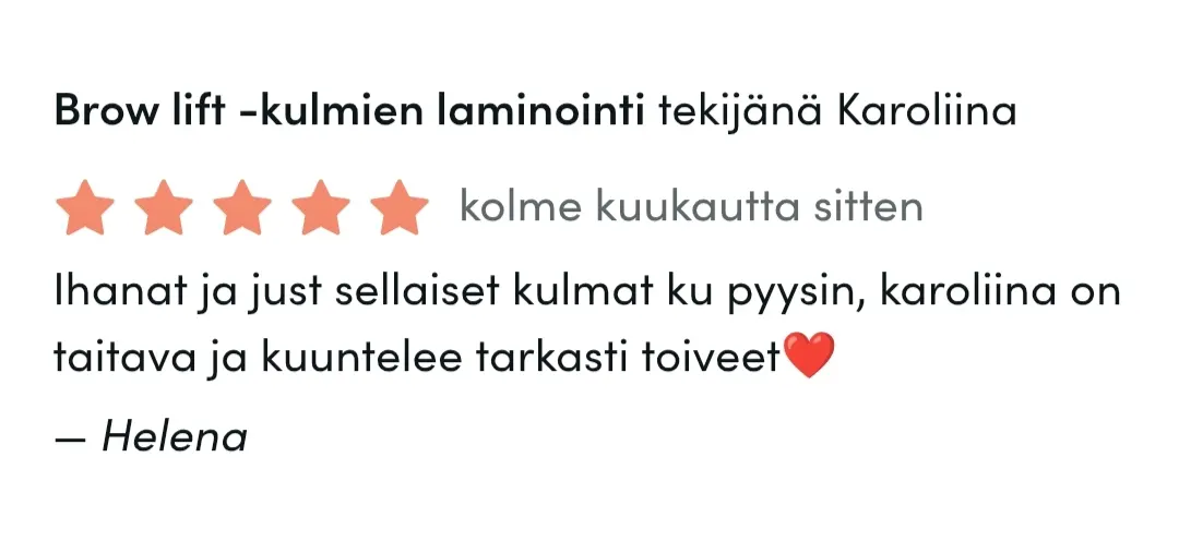 Erityisosaamiseeni kuuluu brow liftit ja brassi, joka onkin kaikista suosituin sokerointipalvelu. Haluan jatkuvasti kehittyä työssäni, kouluttautua lisää ja syventää osaamistani, jotta voin tarjota asiakkailleni monipuolista kauneudenhoitoa, laadusta tinkimättä.